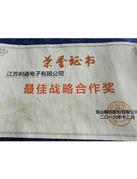 被授予2015年度宝山钢铁股份有限公司“最佳战略合作奖”