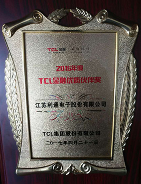 被授予2016年度TCL集团股份有限公司“TCL金融优质伙伴奖”