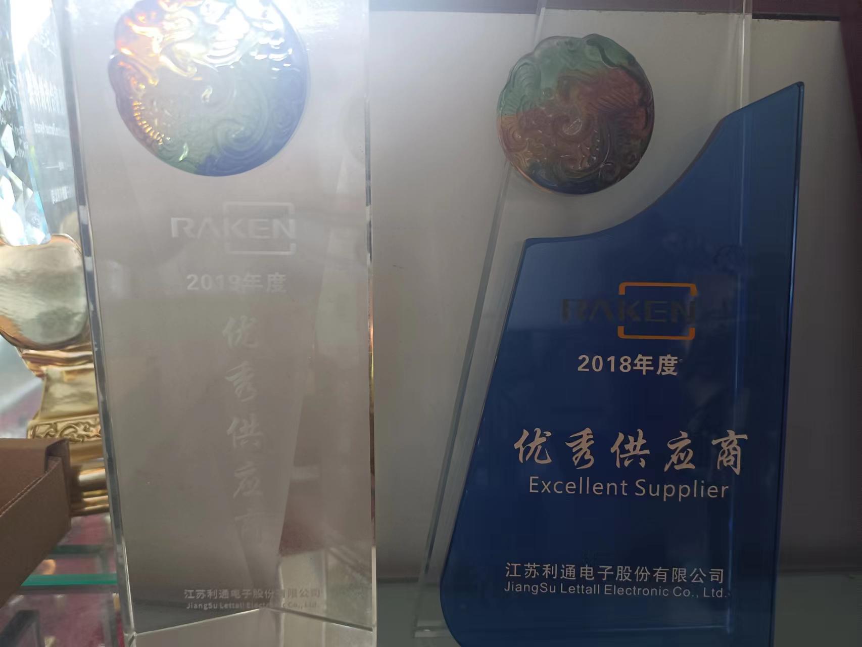 被授予2018年度苏州乐轩”优秀供应商“