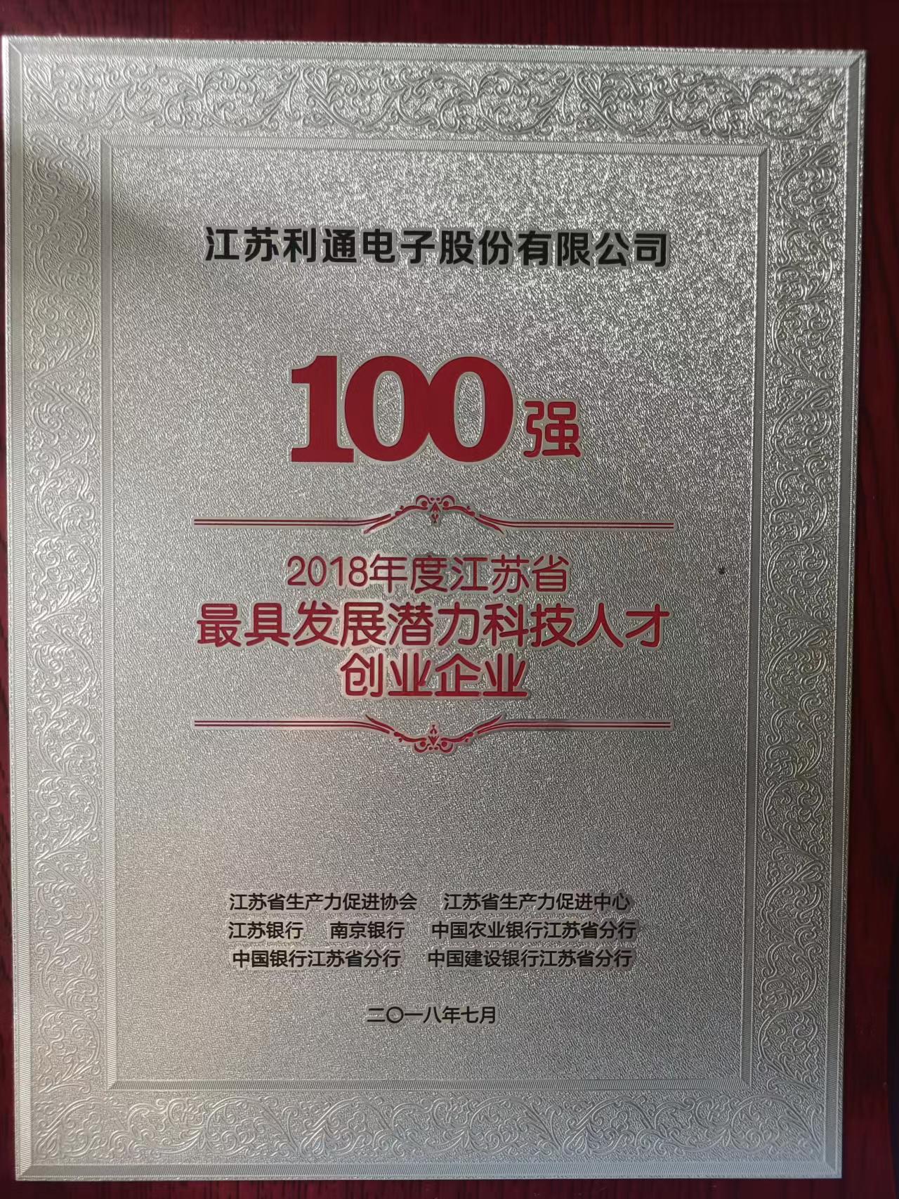 被授予2018年度江苏省发展潜力科技人才创业企业